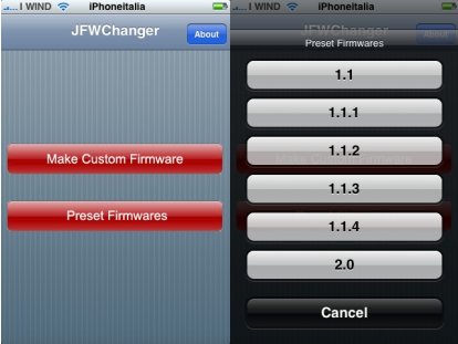 • Preset Firmware: podemos escolher qualquer versão do firmware existentes até o momento do iPhone, bem como para selecionar a nova 2,0 que está chegando.